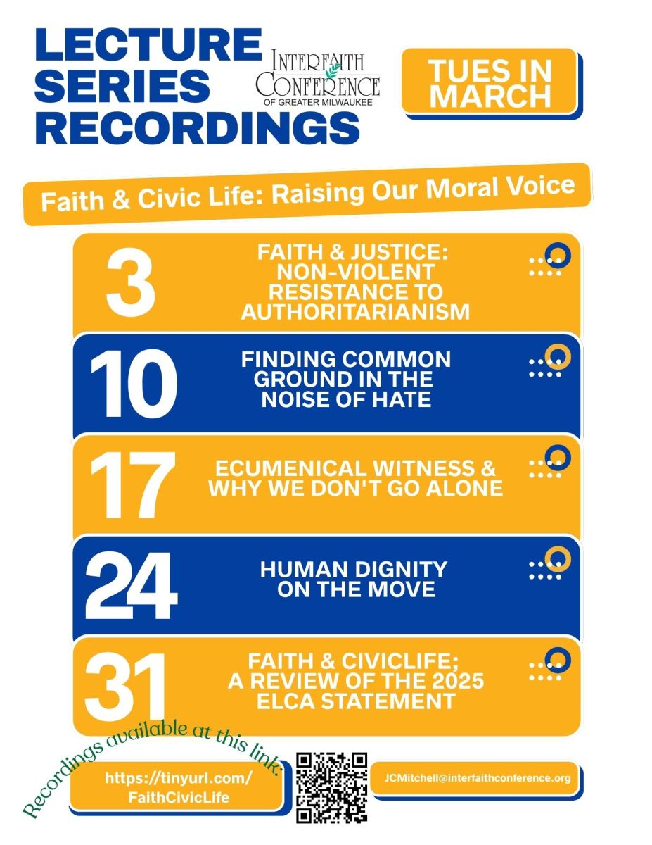 Founded in 1970, the Interfaith Conference of Greater Milwaukee is a nonprofit organization of 22 member faiths and denominations, whose mission is to build relationships among people of faith to promote greater understanding, dignity, and respect, and to advocate for the inclusion and acceptance of all. For a list of member organizations and more information about the Conference, it mission, vision, values and work, please go to www.interfaithconference.org